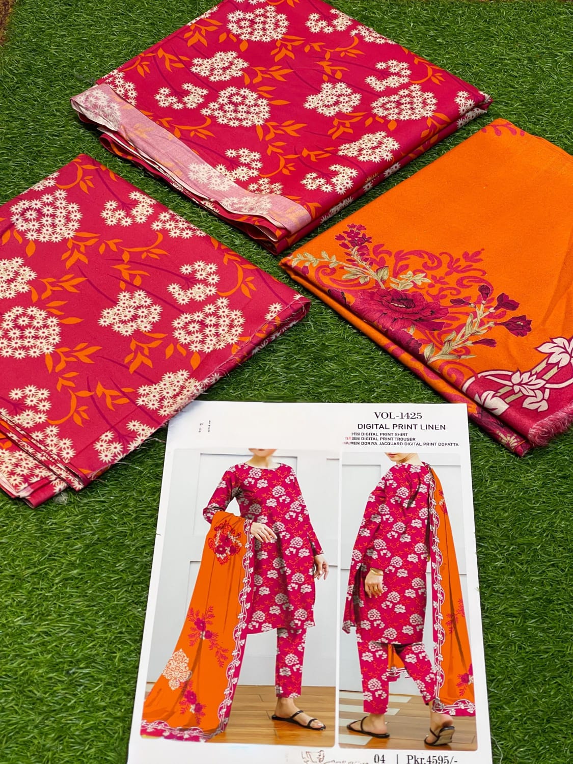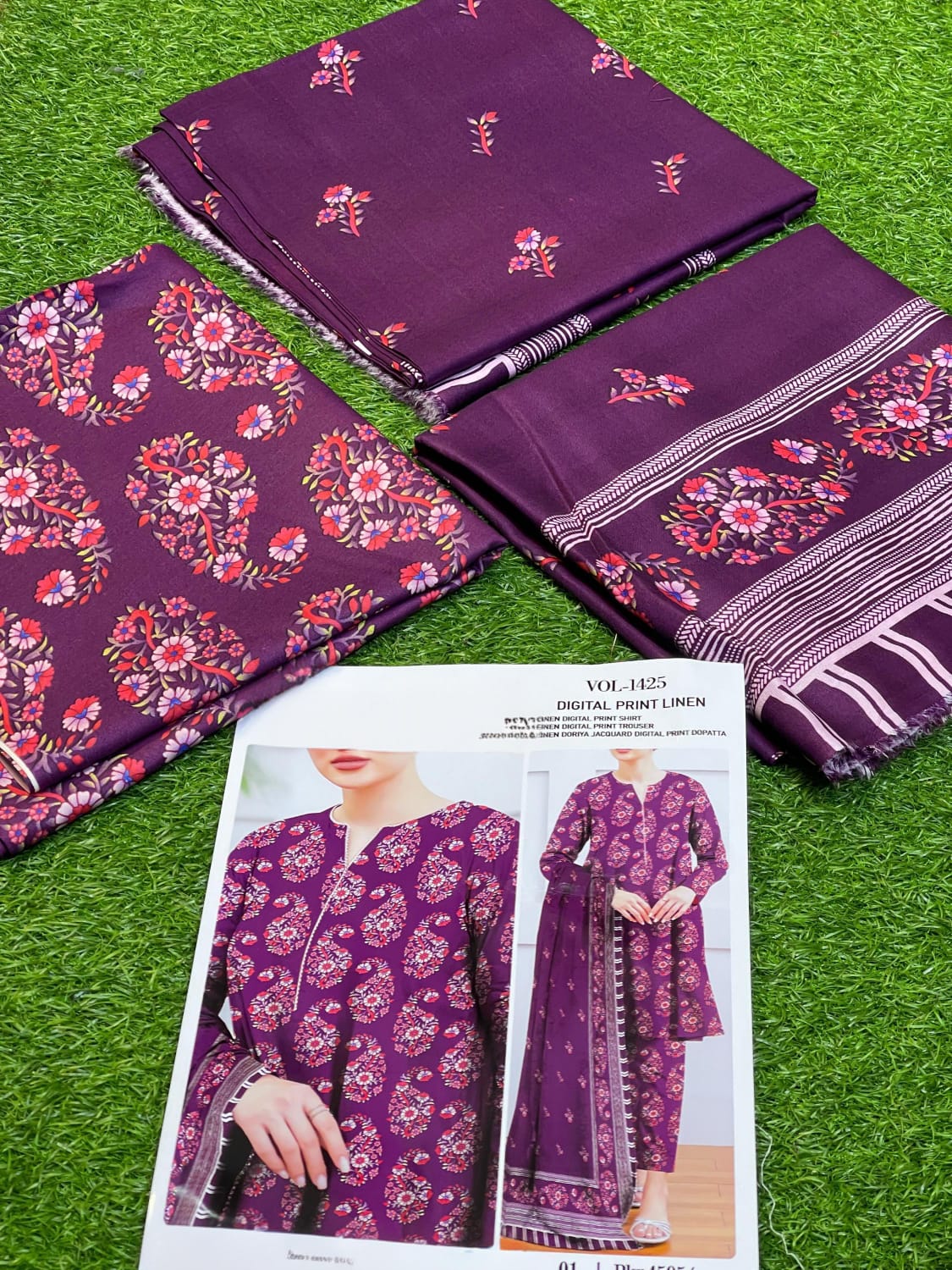 Add timeless charm to your wardrobe with this digitally printed 3-piece linen ensemble by Arsh19 – crafted with quality, style, and elegance in every thread. This collection is a perfect blend of comfort and sophistication, ideal for casual and semi-formal occasions.